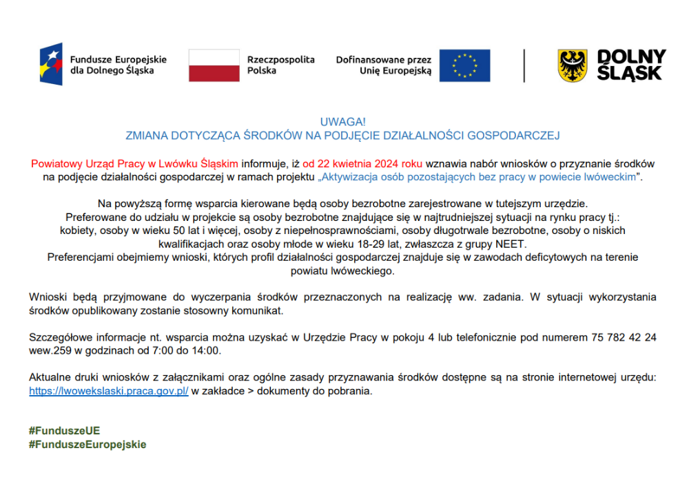 Nabór wniosków o przyznanie środków na podjęcie działalności gospodarczej