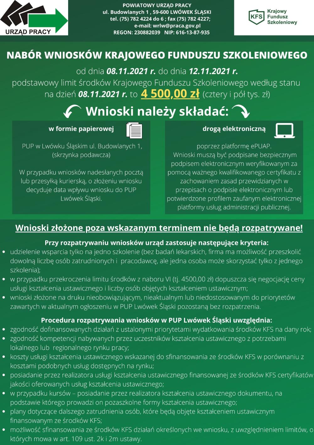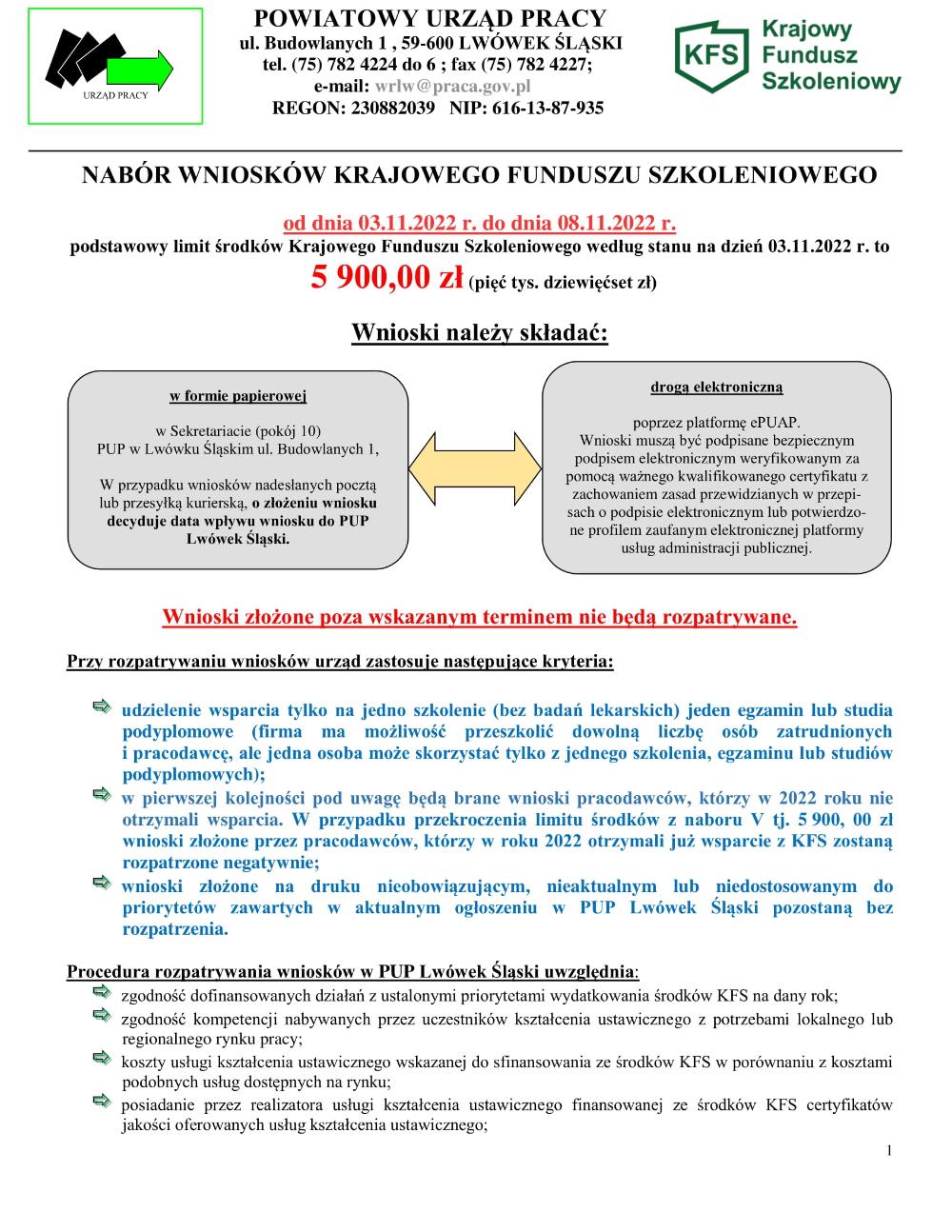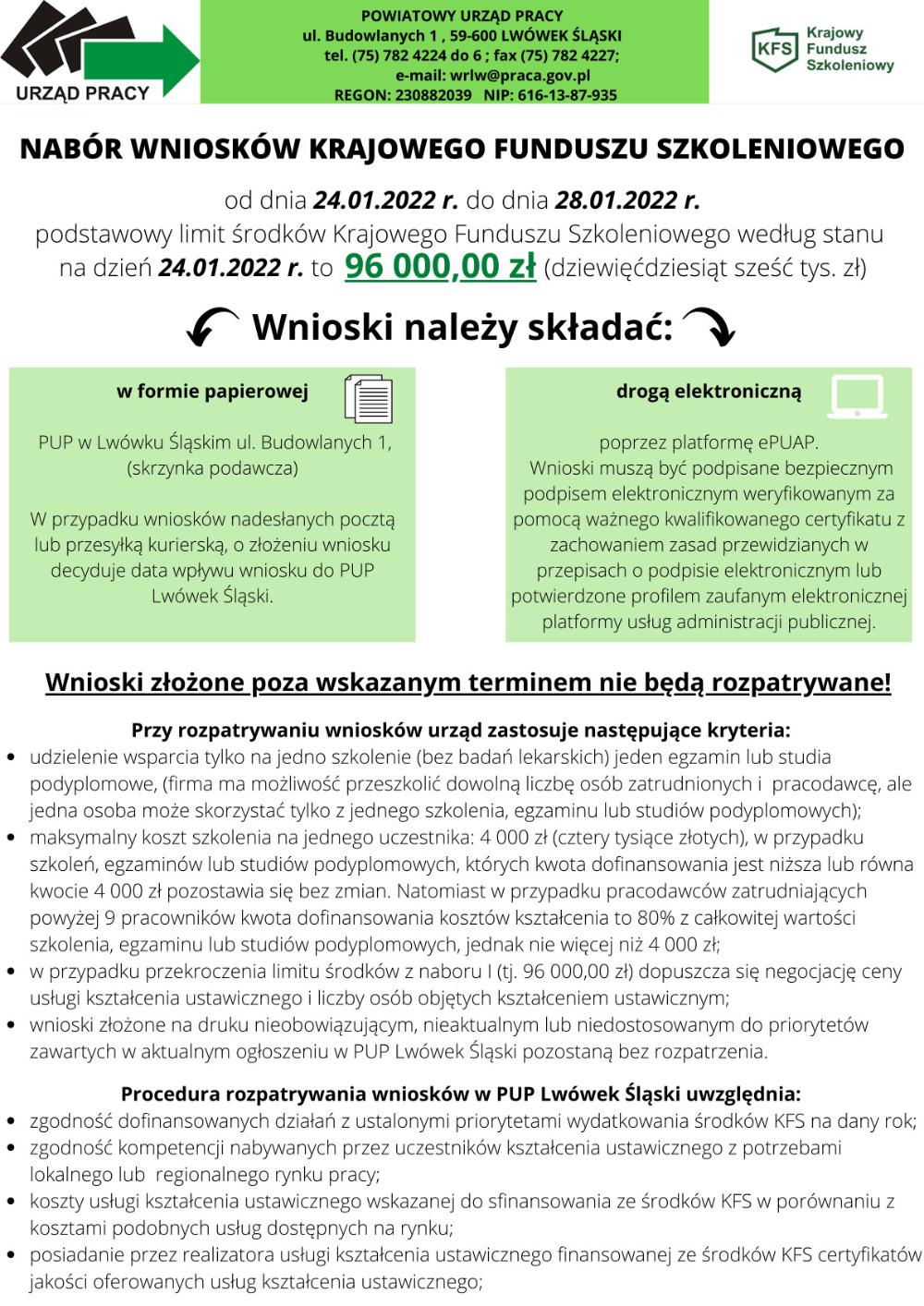 Nabór wniosków jest powtarzany do wyczerpania limitu środków KFS przyznanego dla danego powiatu.