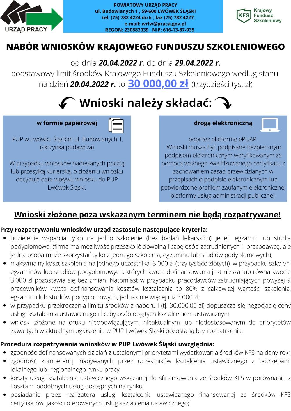 KFS 2022 r. - Ogłaszamy I nabór wniosków Krajowego Funduszu Szkoleniowego
